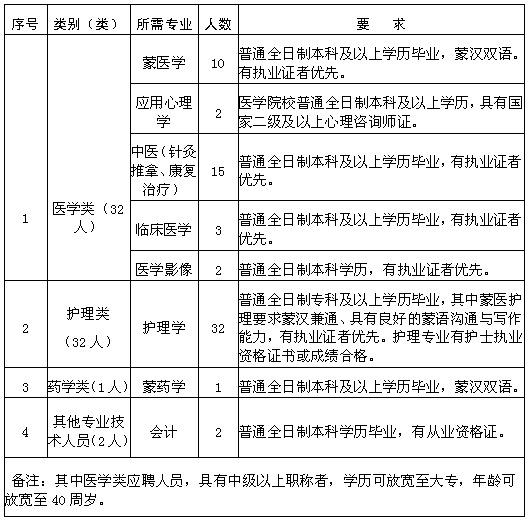 6、年齡在35周歲以下(1980年9月1日后出生);其中醫(yī)學類應聘人員,具有中級以上職稱者,學歷可放寬至大專,年齡可放寬至40周歲。