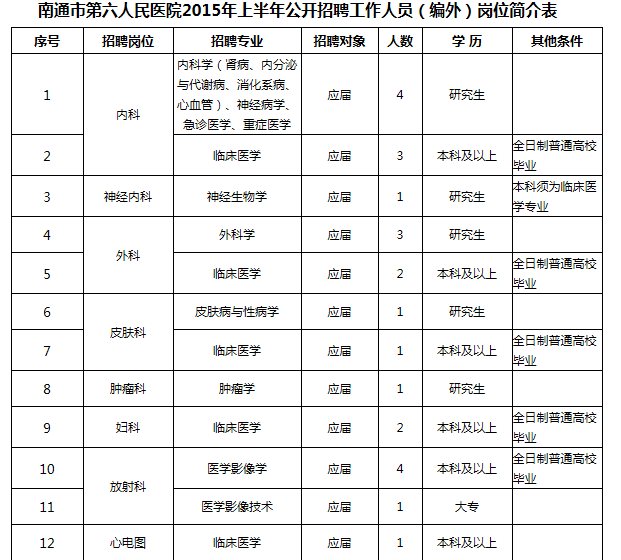 2.面試時(shí)間和地點(diǎn)將通過南通市第六人民醫(yī)院網(wǎng)站公布;