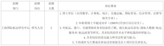 上海海事大學(xué)是一所以航運(yùn)、物流、海洋為特色,具有工學(xué)、管理學(xué)、經(jīng)濟(jì)學(xué)、法學(xué)、文學(xué)、理學(xué)和藝術(shù)學(xué)等學(xué)科門類的多科性應(yīng)用研究型大學(xué)。為推進(jìn)學(xué)校教育事業(yè)發(fā)展,根據(jù)《上海市事業(yè)單位公開(kāi)招聘人員辦法》(滬人社規(guī)〔2019〕15號(hào)),按照公開(kāi)、平等、競(jìng)爭(zhēng)、擇優(yōu)的原則,面向社會(huì)公開(kāi)招聘2名研究人員。