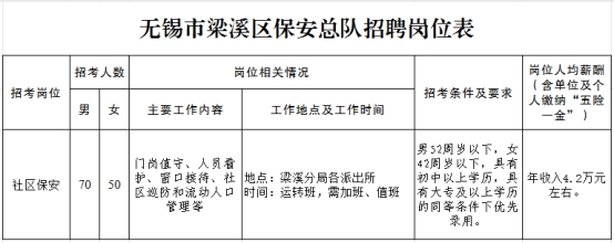 無錫市梁溪區(qū)保安總隊(duì)招聘崗位表(點(diǎn)擊查看大圖)