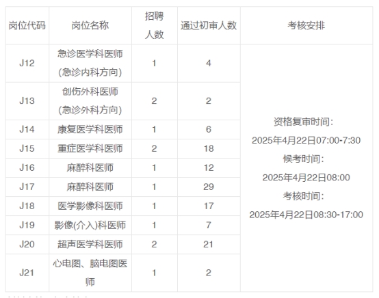 3.本次為2025年第一批緊缺類專技人才考核(報(bào)名截止時間為2025年4月14日24:00)。醫(yī)院將根據(jù)崗位報(bào)名及錄用情況,不定期啟動考核程序。