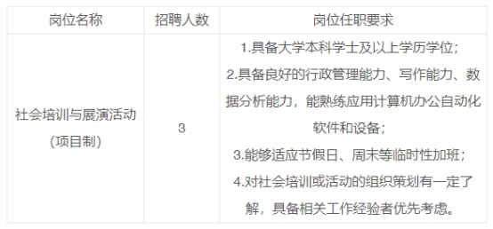 崗位名稱:非學(xué)歷培訓(xùn)項目管理崗,招聘項目制工作人員共3人,采用人才派遣方式錄用。詳見下表。