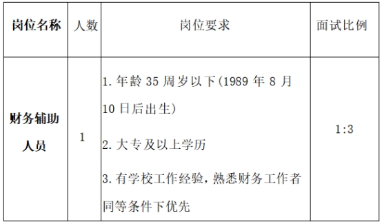 根據(jù)江蘇省震澤中學發(fā)展需要,為進一步做好教育教學保障工作,按照“自愿報名,公平競爭,擇優(yōu)錄用”的原則,面向社會公開招聘財務輔助人員1名,F(xiàn)公布招聘公告如下: