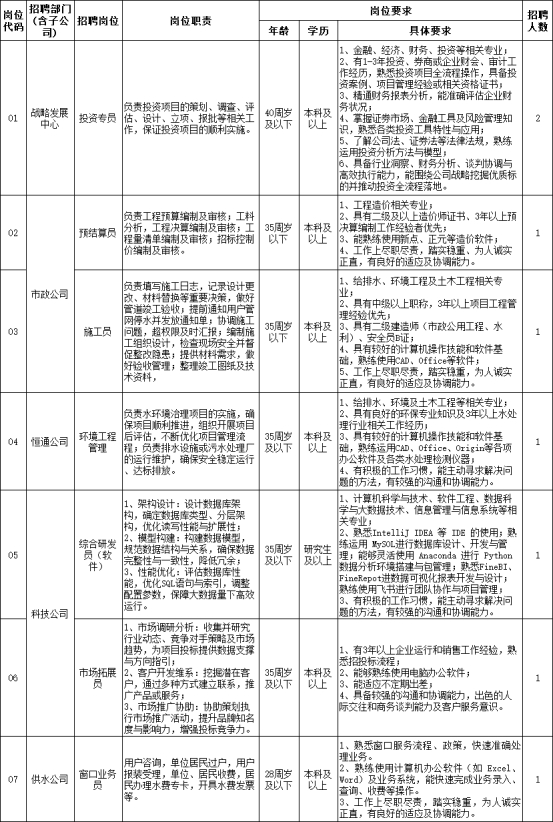 為適應(yīng)公司高質(zhì)量發(fā)展要求,建設(shè)高素質(zhì)、專業(yè)化人才隊(duì)伍,按照相關(guān)政策規(guī)定,現(xiàn)面向社會(huì)公開招聘工作人員8名,現(xiàn)將有關(guān)事項(xiàng)公告如下: