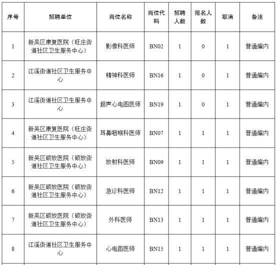 | 根據(jù)《2025年無(wú)錫高新區(qū)(新吳區(qū))醫(yī)療衛(wèi)生事業(yè)單位公開招聘工作人員公告(普通類)》(錫人社事招公告?zhèn)洹?025〕47號(hào))相關(guān)規(guī)定,經(jīng)無(wú)錫高新區(qū)(新吳區(qū))人力資源和社會(huì)保障局、無(wú)錫市人力資源和社會(huì)保障局備案,對(duì)以下崗位進(jìn)行調(diào)整。 一、取消崗位
