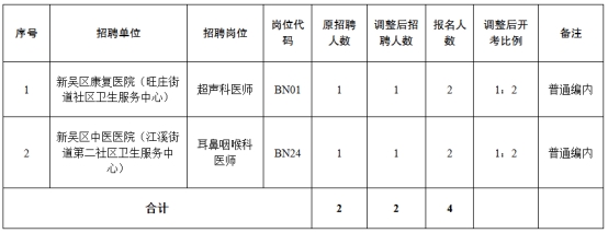 根據(jù)《2025年無(wú)錫高新區(qū)(新吳區(qū))醫(yī)療衛(wèi)生事業(yè)單位公開招聘工作人員公告(普通類)》(錫人社事招公告?zhèn)洹?025〕47號(hào))相關(guān)規(guī)定,經(jīng)無(wú)錫高新區(qū)(新吳區(qū))人力資源和社會(huì)保障局、無(wú)錫市人力資源和社會(huì)保障局備案,對(duì)以下崗位進(jìn)行調(diào)整。