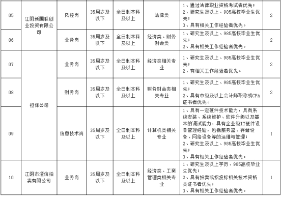 江陰市新國聯(lián)集團有限公司成立于2001年3月,是江陰市人民政府出資設(shè)立的國有獨資企業(yè)。集團下轄子公司因業(yè)務發(fā)展需要,決定面向社會公開招聘工作人員14名,現(xiàn)將有關(guān)事項公告如下: