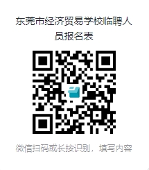 1.報考人員微信掃碼填報《東莞市經(jīng)濟貿(mào)易學(xué)校臨聘人員報名表》