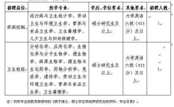 為進(jìn)一步加強(qiáng)疾病預(yù)防控制人才隊(duì)伍建設(shè),根據(jù)《浙江省事業(yè)單位公開招聘人員暫行辦法》規(guī)定,經(jīng)嘉興市人力資源和社會(huì)保障局和嘉興市衛(wèi)生局同意,嘉興市疾病預(yù)防控制中心面向社會(huì)公開招聘事業(yè)編制衛(wèi)技工作人員2名。現(xiàn)將有關(guān)事項(xiàng)公告如下: