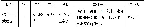 桂城總商會工作人員2名(合同制),主要承擔(dān)綜合業(yè)務(wù)受理窗口工作。