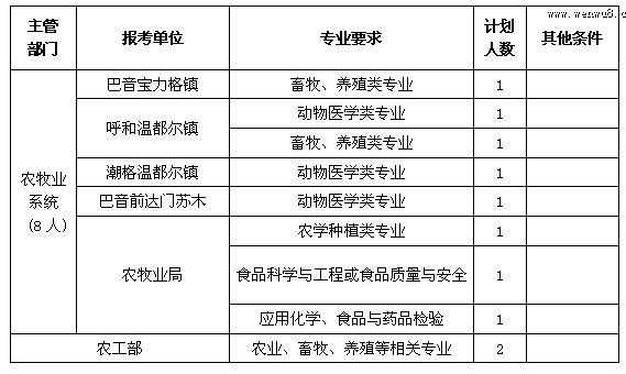 2014年烏拉特后旗農(nóng)牧部門公開招聘計劃表
