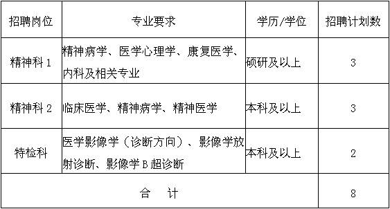 “精神科1”崗位的考試采用面試的形式,“精神科2”和“特檢科”崗位的考試采用筆試和面試相結合的形式。