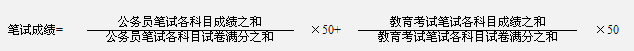 總成績=筆試成績×50%+面試成績×50%。