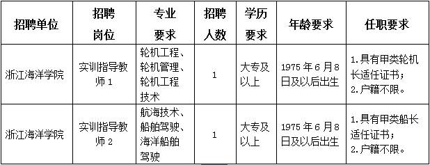 根據(jù)《浙江省事業(yè)單位公開招聘人員暫行辦法》要求,經(jīng)舟山市人力資源和社會(huì)保障局同意,浙江海洋學(xué)院決定面向社會(huì)公開招聘2名實(shí)訓(xùn)指導(dǎo)教師,F(xiàn)將有關(guān)事項(xiàng)公告如下: