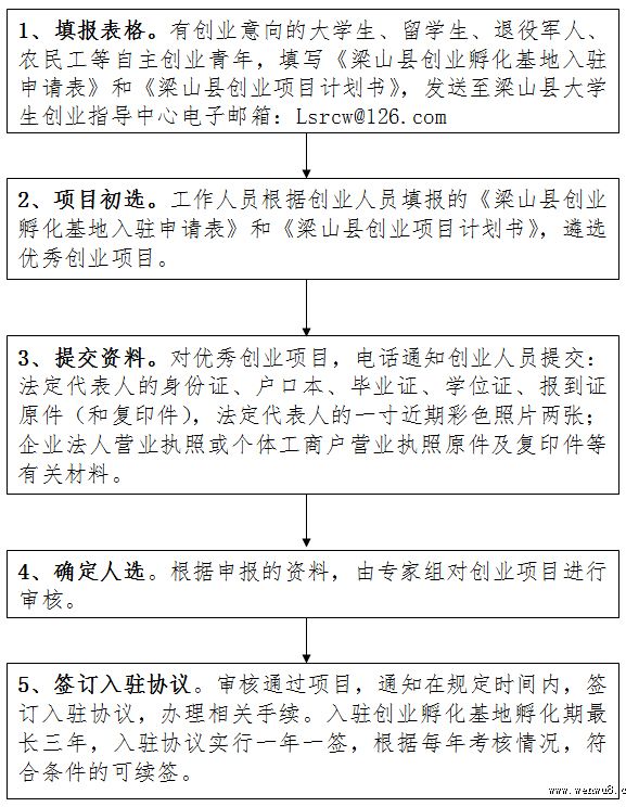 有入駐意愿的創(chuàng)業(yè)人員需于7月15日前向梁山縣大學(xué)生創(chuàng)業(yè)指導(dǎo)中心提出入駐申請(qǐng),詳細(xì)申請(qǐng)流程如下: