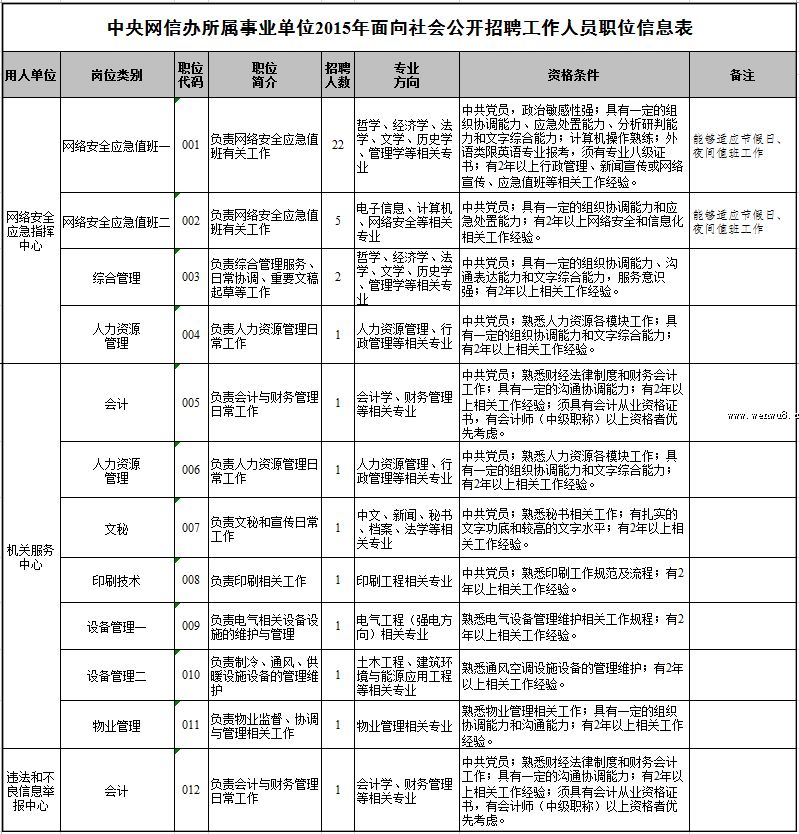 附件:《中央網(wǎng)信辦所屬事業(yè)單位2015年面向社會公開招聘工作人員職位信息表》