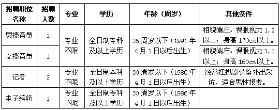 記者和電子編輯招聘職位人數(shù)與報考人數(shù)之比應(yīng)達(dá)1:5,達(dá)不到1:5比例的,則相應(yīng)核減或取消招聘計劃;播音員職位招聘人數(shù)與報考人數(shù)之比應(yīng)達(dá)到1:20,達(dá)不到1:20比例的,則取消該崗位招聘計劃。