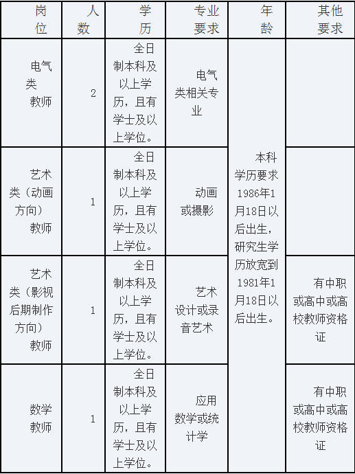 根據(jù)《事業(yè)單位公開招聘人員暫行規(guī)定》(人社部〔2005〕6號令)的有關(guān)要求,結(jié)合我校工作需要,擬面向社會公開招聘專業(yè)教師5名。具體方案公告如下: