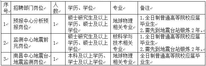 根據(jù)人社部《事業(yè)單位公開(kāi)招聘人員暫行規(guī)定》的有關(guān)規(guī)定,經(jīng)中國(guó)地震局批準(zhǔn),江西省地震局現(xiàn)公開(kāi)招聘事業(yè)單位工作人員3名,F(xiàn)將有關(guān)事項(xiàng)公告如下: