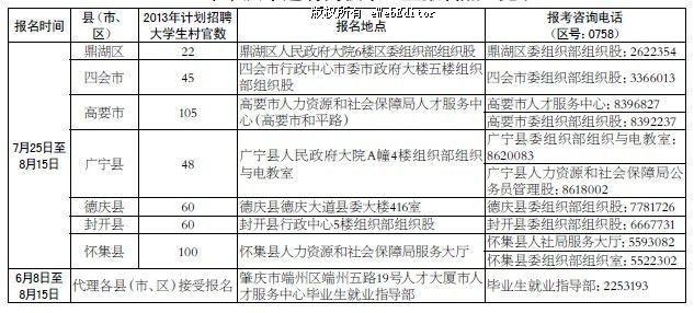 2013年肇慶市選聘高校畢業(yè)生報名點(diǎn)一覽表