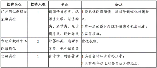 本次招聘工作由市信息化管理辦公室具體組織實施。咨詢電話:0562-5880617。