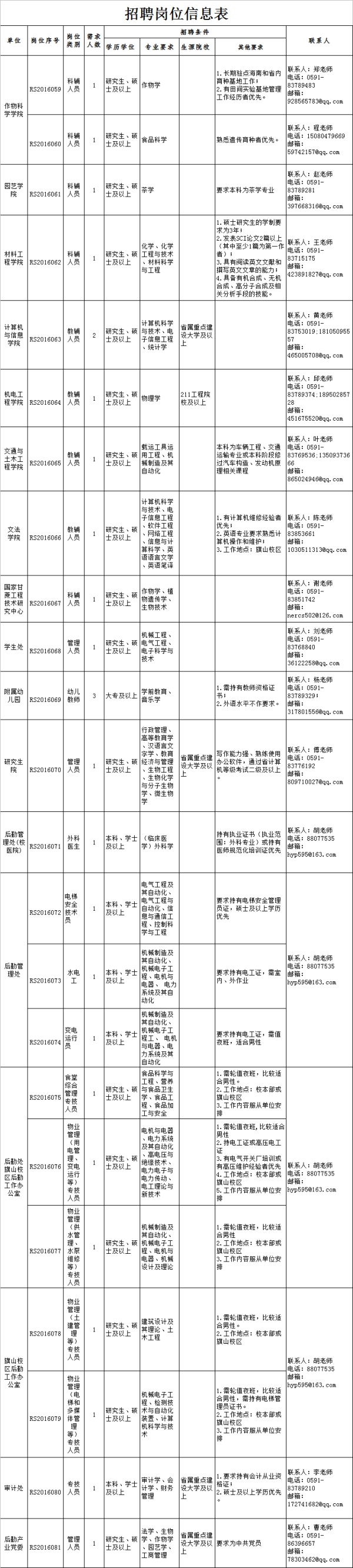 2.聘用人員須服從用人單位工作崗位和工作地點(diǎn)安排。旗山校區(qū)地址:福建省福州市閩侯大學(xué)城溪源宮路。