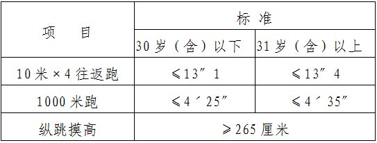 因崗位特殊性,本次招聘崗位體能測(cè)試前置。通過(guò)現(xiàn)場(chǎng)報(bào)名資格初審的考生進(jìn)行體能測(cè)試。體能測(cè)試參照陜西省錄用人民警察(男子)體能測(cè)評(píng)項(xiàng)目和標(biāo)準(zhǔn)(暫行)執(zhí)行。