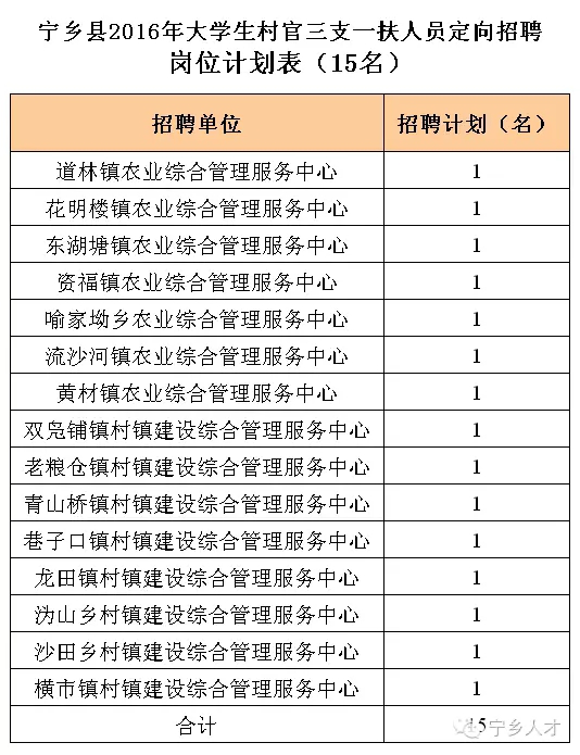 寧鄉(xiāng)縣2016年大學(xué)生村官、三支一扶人員定向招聘公告