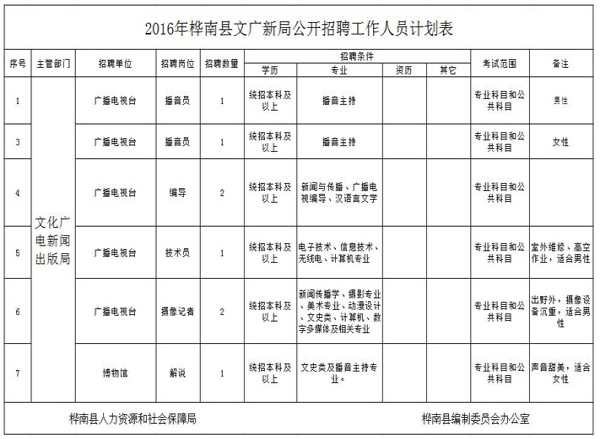 此次招錄單位均為樺南縣財政全額撥款事業(yè)單位,隸屬于樺南縣文化廣電新聞出版局。