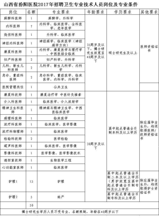 2017年呂梁市汾陽(yáng)醫(yī)院招聘衛(wèi)生專業(yè)技術(shù)人員公告