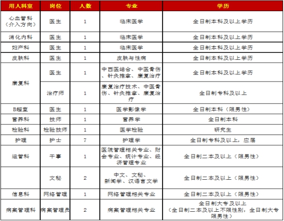 因工作需要,岳池縣人民醫(yī)院面向社會(huì)擬招聘以下人員: