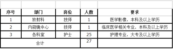 根據(jù)醫(yī)院發(fā)展需求,我院需招聘一批醫(yī)療相關(guān)專業(yè)技術(shù)人員,具體情況如下: