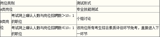 綜合素質(zhì)評估主要采取專業(yè)技能測試、小組集體討論等形式,對考生進行考察。各崗位具體考核形式見下表。