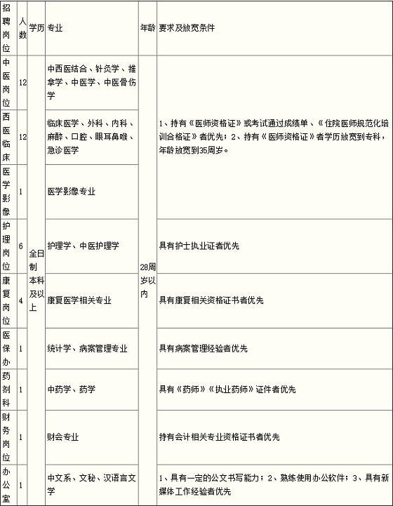 為滿足醫(yī)院發(fā)展的人才需求,經(jīng)祿豐市衛(wèi)生健康局批準(zhǔn),祿豐市中醫(yī)醫(yī)院計(jì)劃招聘編制外專業(yè)技術(shù)人員39名,F(xiàn)將招聘事宜公告如下: