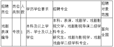 3、具有較強(qiáng)的戲劇(戲曲)表演及編導(dǎo)能力,能適應(yīng)經(jīng)常下鄉(xiāng)進(jìn)村;