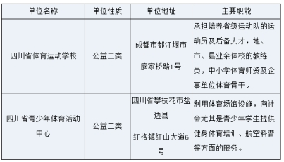 根據(jù)《事業(yè)單位人事管理?xiàng)l例》《事業(yè)單位公開(kāi)招聘人員暫行規(guī)定》和《四川省省屬事業(yè)單位公開(kāi)招聘工作人員實(shí)施細(xì)則(試行)》等有關(guān)規(guī)定,四川省體育局?jǐn)M面向社會(huì)公開(kāi)招聘部分工作人員補(bǔ)充到四川省體育運(yùn)動(dòng)學(xué)校、四川省青少年體育活動(dòng)中心等2個(gè)直屬事業(yè)單位工作,F(xiàn)將公開(kāi)招聘有關(guān)事項(xiàng)公告如下(本公告由四川省體育局同時(shí)在四川省人力資源和社會(huì)保障廳官網(wǎng)[rst.sc.gov.cn,下同]“人事考試”專(zhuān)欄和四川省體育局官網(wǎng)[http://tyj.sc.gov.cn/,下同]“通知公告—招考錄用”專(zhuān)欄上發(fā)布)。