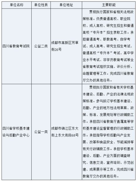 根據(jù)《事業(yè)單位人事管理條例》、《事業(yè)單位公開招聘人員暫行規(guī)定》和《四川省省屬事業(yè)單位公開招聘工作人員實施細(xì)則(試行)》等有關(guān)規(guī)定,四川省教育廳(以下簡稱省教育廳)擬面向社會公開招聘部分工作人員補充到四川省教育考試院、四川省學(xué)校基本建設(shè)與后勤產(chǎn)業(yè)中心等2個直屬事業(yè)單位工作,F(xiàn)將公開招聘有關(guān)事項公告如下(本公告由省教育廳同時在四川省人力資源和社會保障廳官網(wǎng)[rst.sc.gov.cn,下同]“人事考試”專欄和省教育廳官網(wǎng)[http://edu.sc.gov.cn/,下同]上發(fā)布。