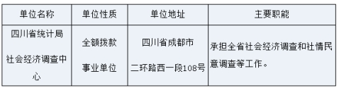 根據(jù)《事業(yè)單位人事管理條例》、《事業(yè)單位公開招聘人員暫行規(guī)定》和《四川省省屬事業(yè)單位公開招聘工作人員實施細則(試行)》等有關(guān)規(guī)定,四川省統(tǒng)計局擬面向社會公開招聘部分工作人員補充到四川省統(tǒng)計局社會經(jīng)濟調(diào)查中心等1個下屬事業(yè)單位工作。現(xiàn)將公開招聘有關(guān)事項公告如下(本公告由四川省統(tǒng)計局同時在四川省人力資源和社會保障廳官網(wǎng)[rst.sc.gov.cn,下同]“人事考試”專欄和四川省統(tǒng)計局網(wǎng)站[tjj.sc.gov.cn,下同]上發(fā)布)。