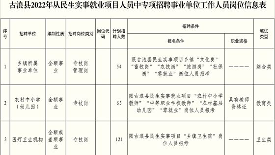 報考人員為經全省普通高校畢業(yè)生民生實事就業(yè)項目招考統(tǒng)一選拔到古浪縣各鄉(xiāng)鎮(zhèn)事業(yè)單位(含鄉(xiāng)鎮(zhèn)衛(wèi)生院,鄉(xiāng)鎮(zhèn)中小學、幼兒園、中等職業(yè)學校,鄉(xiāng)鎮(zhèn)農技、畜牧、文化、社保、計生等崗位)未納入事業(yè)編制管理且目前仍在崗的所有工作人員(零就業(yè)家庭人員按當時安置崗位,與民生實事就業(yè)項目同類崗位報考)。