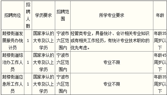 海曙區(qū)鼓樓街道擬面向社會公開招聘編外用工人員3名。現(xiàn)就有關(guān)事項公告如下: