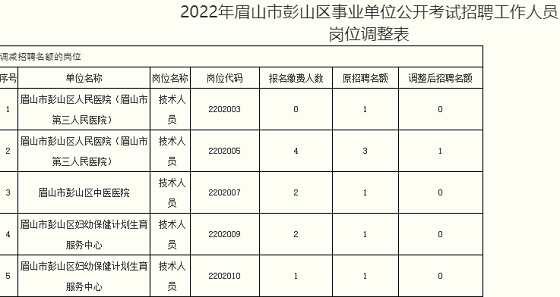 附件:2022年眉山市彭山區(qū)事業(yè)單位公開考試招聘工作人員崗位調(diào)整表