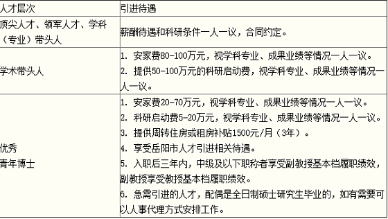 根據(jù)《岳陽市打造高質(zhì)量發(fā)展人才高地的若干措施》(岳發(fā)〔2020〕6號(hào))和《岳陽市加快省域副中心城市人才高地建設(shè)的若干措施》(岳發(fā)〔2021〕17號(hào))規(guī)定,岳陽市市直事業(yè)單位“四海攬才”引進(jìn)的急需緊缺專業(yè)人才享受以下政策待遇。縣市區(qū)事業(yè)單位人才待遇請(qǐng)具體咨詢招聘單位。