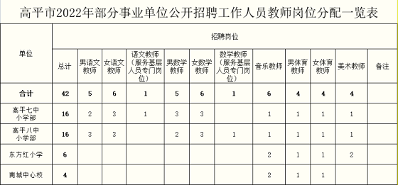 附件2:《高平市2022年部分事業(yè)單位公開招聘工作人員教師崗位分配一覽表》