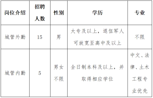 為加強經(jīng)開區(qū)(屺亭街道)人才隊伍建設(shè),進一步提升基層管理水平,根據(jù)《市政府辦公室關(guān)于印發(fā)〈宜興市鎮(zhèn)級編外用工管理暫行實施辦法〉的通知》(宜政辦發(fā)〔2017〕141號)文件規(guī)定,經(jīng)開區(qū)(屺亭街道)決定面向社會公開招聘城管隊員20名,具體事項如下:
