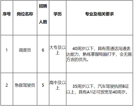 無錫市急救中心是無錫市衛(wèi)生健康委員會直屬公益一類事業(yè)單位,為獨立型院前急救專業(yè)機構(gòu),主要承擔120電話調(diào)度、日常急救、應急救援、醫(yī)療護送、急救保障、急救知識普及與技能培訓等職能。根據(jù)工作需要,面向社會公開招聘編外11名急救人員,現(xiàn)將有關(guān)事項公告如下: