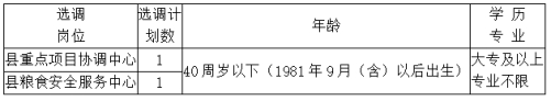 縣發(fā)改委直屬事業(yè)單位東至縣重點項目協(xié)調(diào)中心、東至縣糧食安全服務(wù)中心從縣內(nèi)事業(yè)單位在編在崗人員公開選調(diào)工作人員2名。