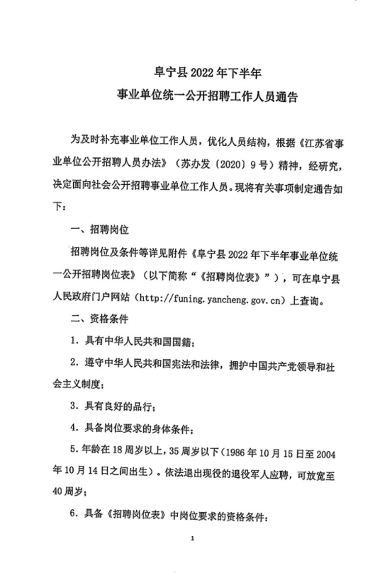 附件:阜寧縣2022年下半年事業(yè)單位統(tǒng)一公開招聘崗位表.xlsx
