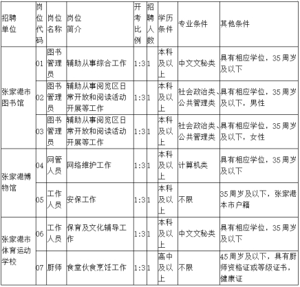 因工作需要,張家港市文體廣電和旅游局所屬事業(yè)單位面向社會開展公益性崗位(編外)人員招聘工作,現(xiàn)將有關(guān)事項(xiàng)公告如下: