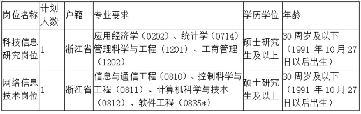 金華市科學(xué)技術(shù)局下屬事業(yè)單位金華市科技信息研究院為正科級(jí)財(cái)政全額補(bǔ)助公益一類事業(yè)單位,主要承擔(dān)科技發(fā)展規(guī)劃與政策研究,科技信息資源建設(shè)及科學(xué)數(shù)據(jù)管理,科技文獻(xiàn)資源開發(fā)利用與傳遞,科技統(tǒng)計(jì)調(diào)查與監(jiān)測評(píng)價(jià),科技項(xiàng)目管理服務(wù),科技創(chuàng)新宣傳及科技教育培訓(xùn)等工作。因工作需要,經(jīng)研究決定面向社會(huì)公開招聘事業(yè)編制專業(yè)技術(shù)人員2名,F(xiàn)將有關(guān)事項(xiàng)公告如下:
