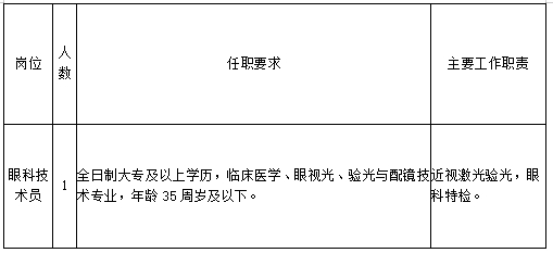 因醫(yī)院醫(yī)療業(yè)務(wù)工作需要,面向社會(huì)公開招聘眼科技術(shù)員1名。